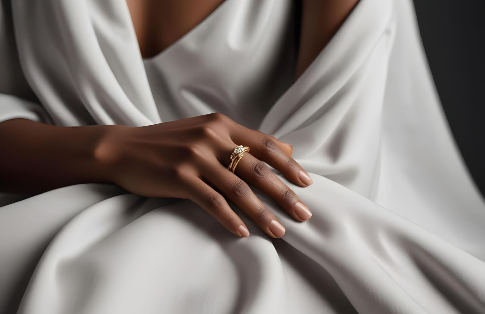 Modern Geometric Ring with Radiant White Crystals