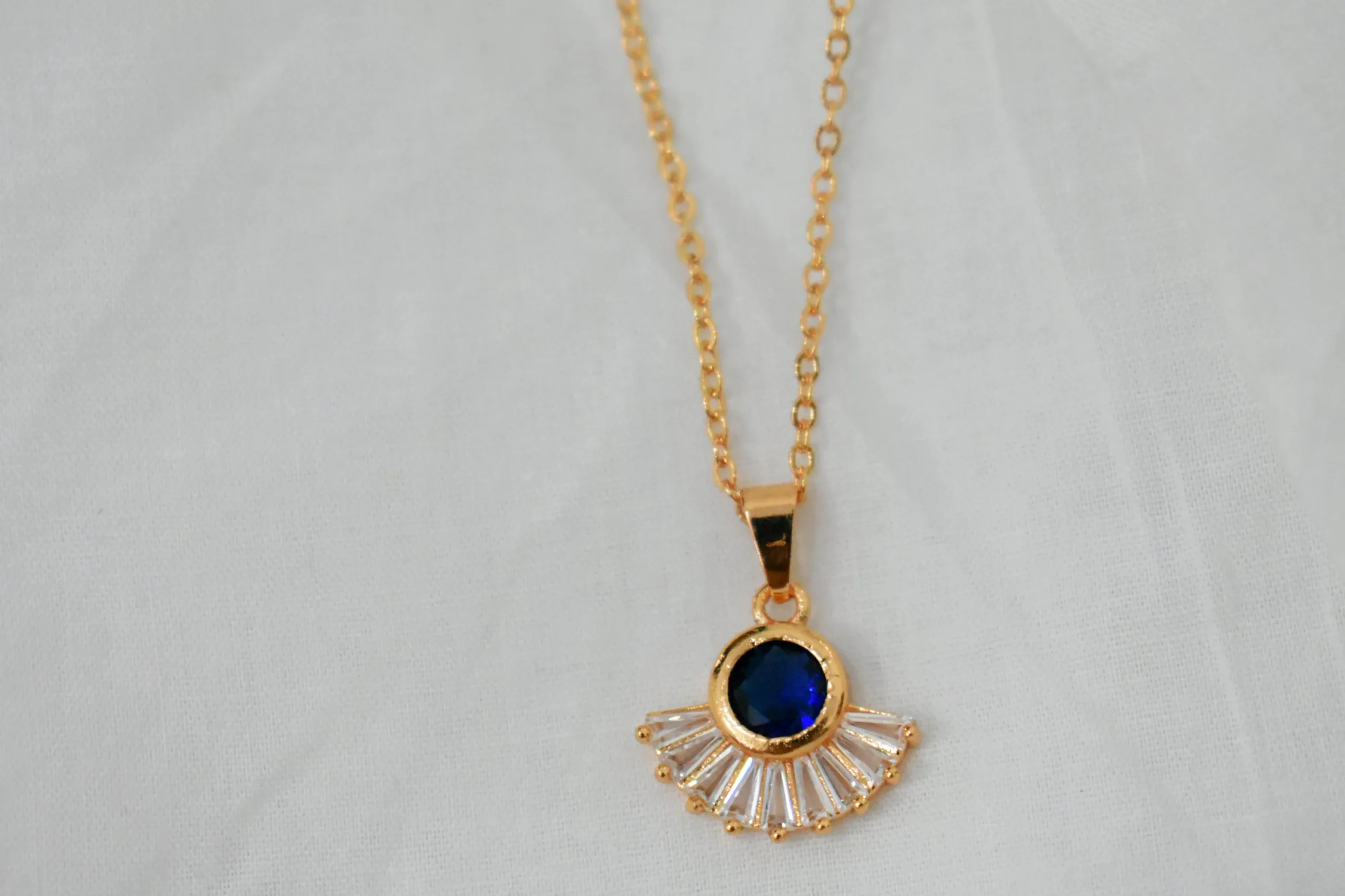 Timeless Navy Blue Fan Pendant – Elegant Jewelry for Girls/Women