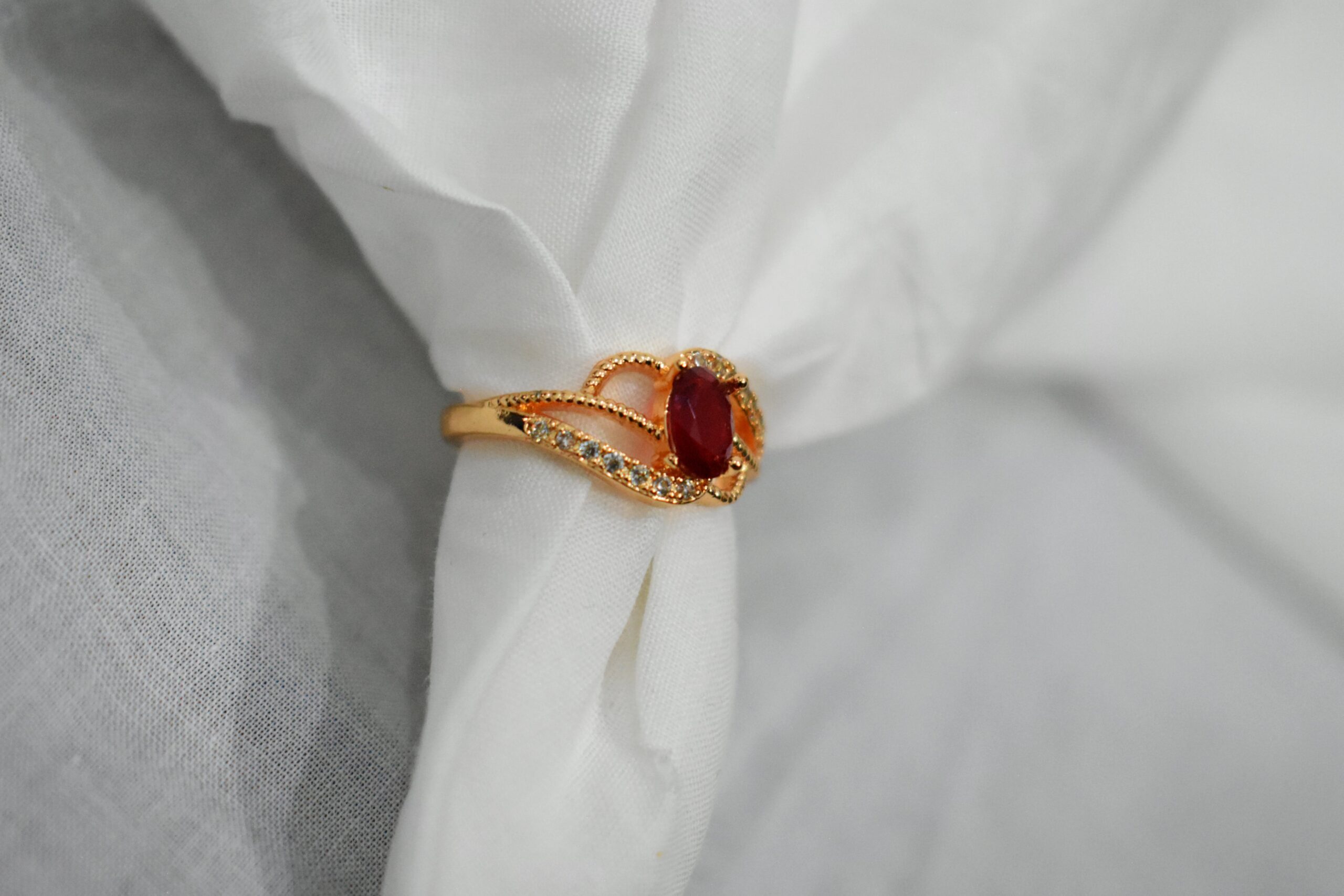 Chic Crossover Ring with Red Crystal & Zircon Detailing