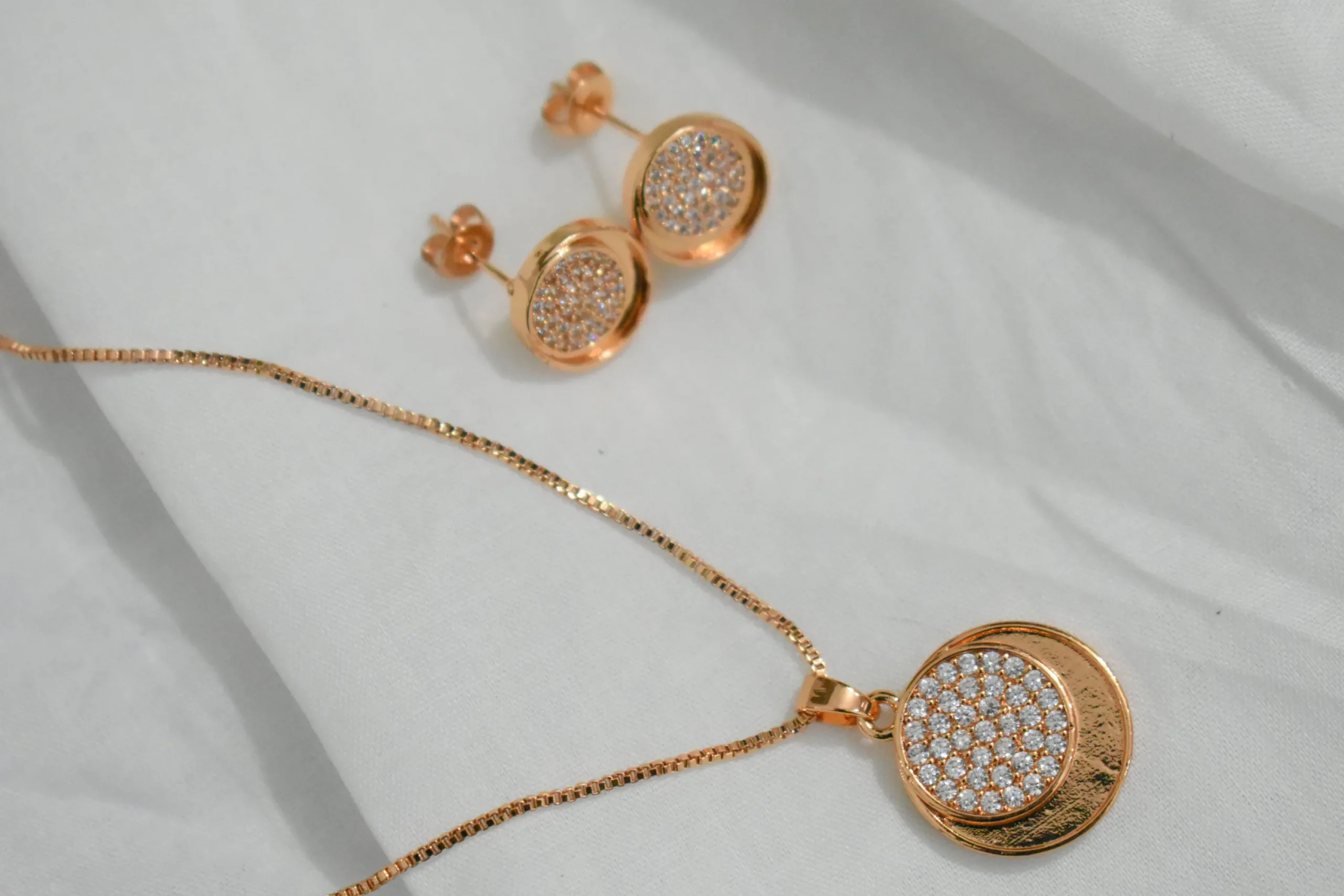 Gold Plated Heart & Diamond Pendant Set – Elegant Jewelry for Girls/Women