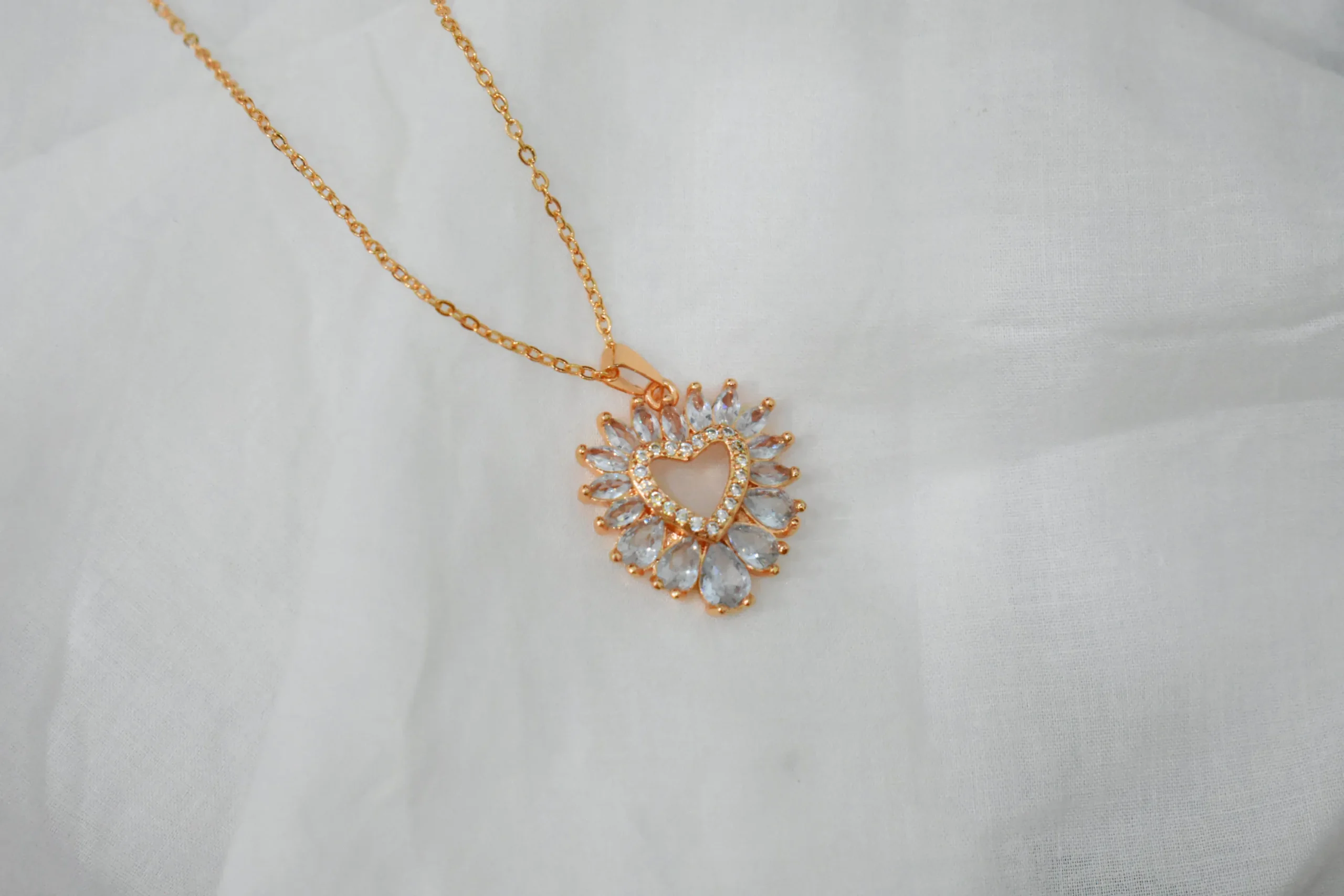 Gold Plated Heart & Diamond Pendant Set – Elegant Jewelry for Girls/Women