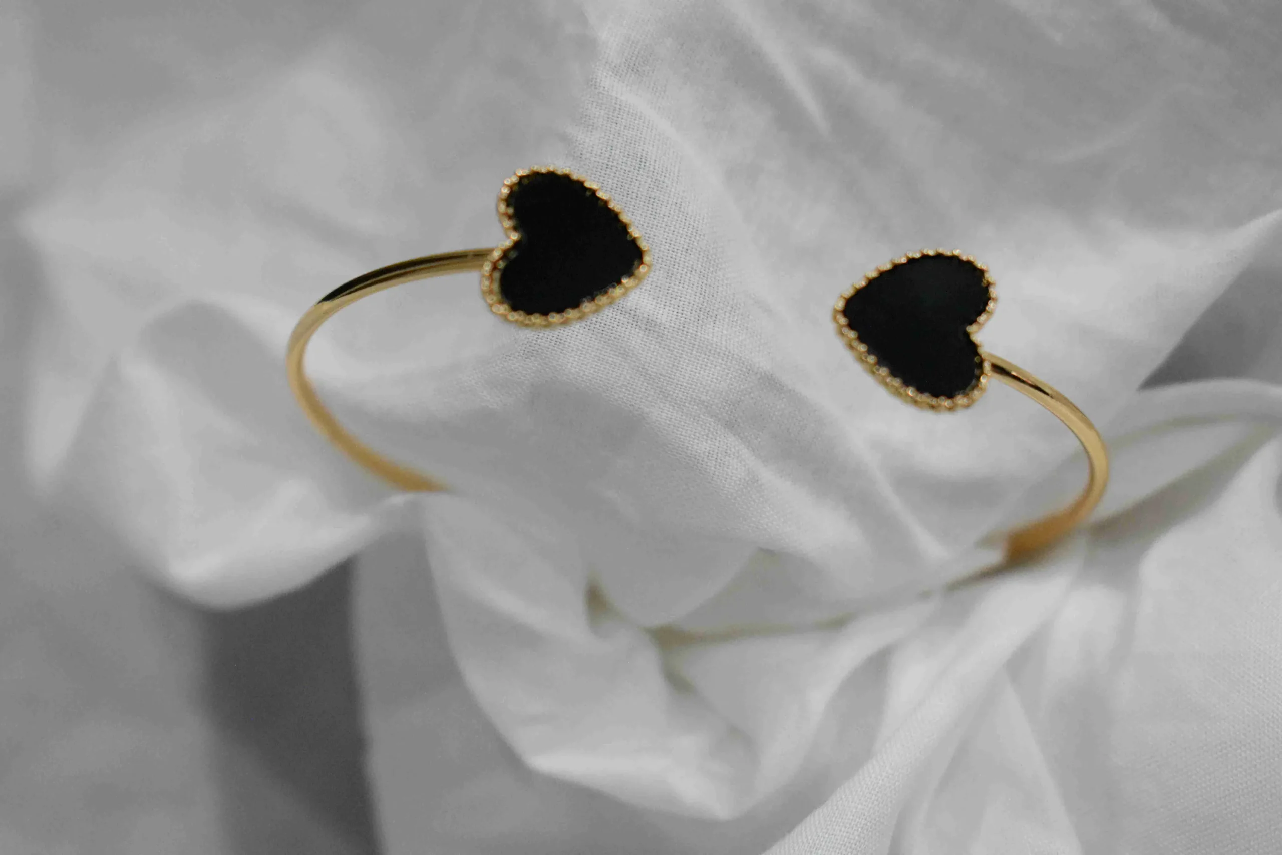 Be the first to review “Elegant Gold Bangle with Black Heart Charms”