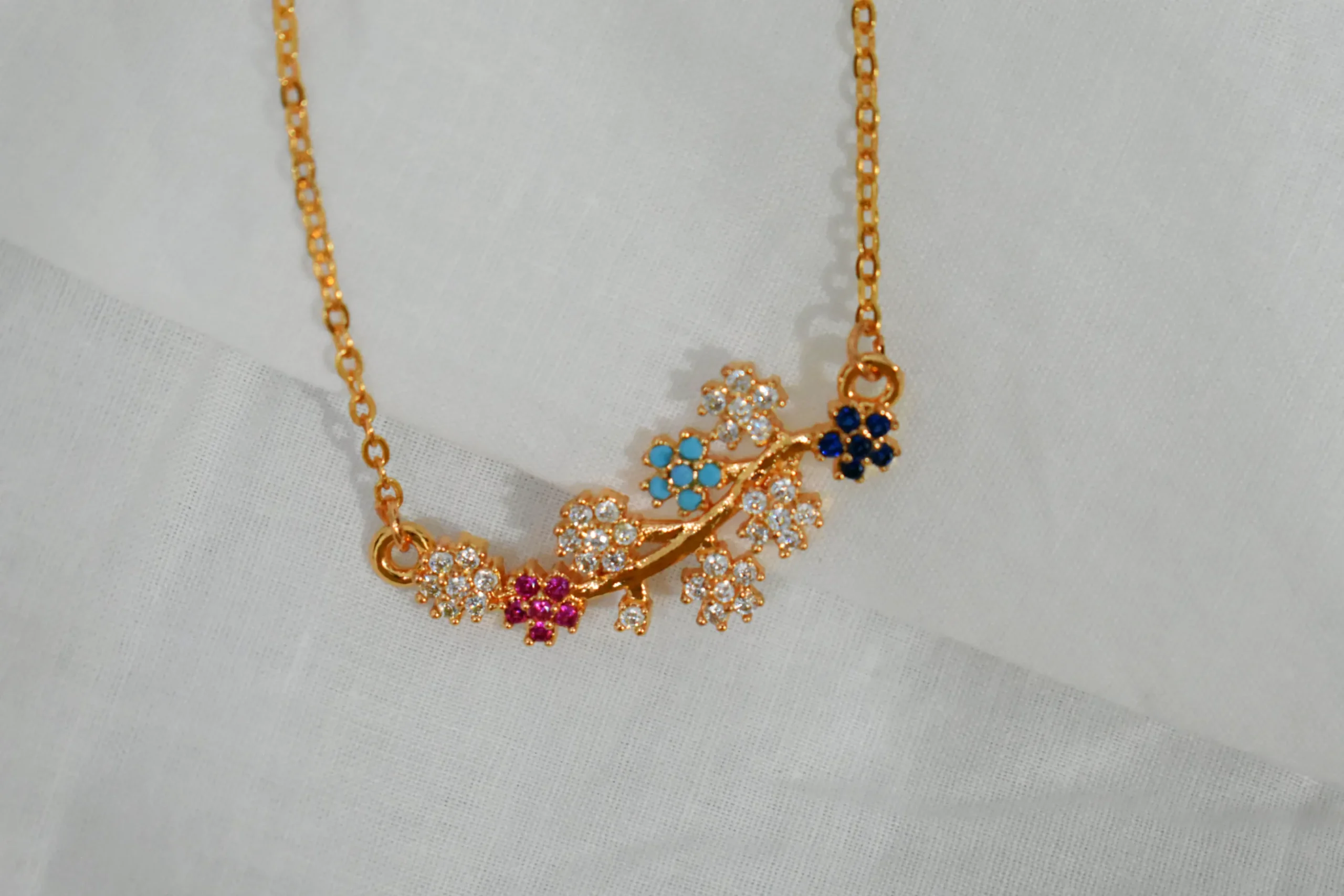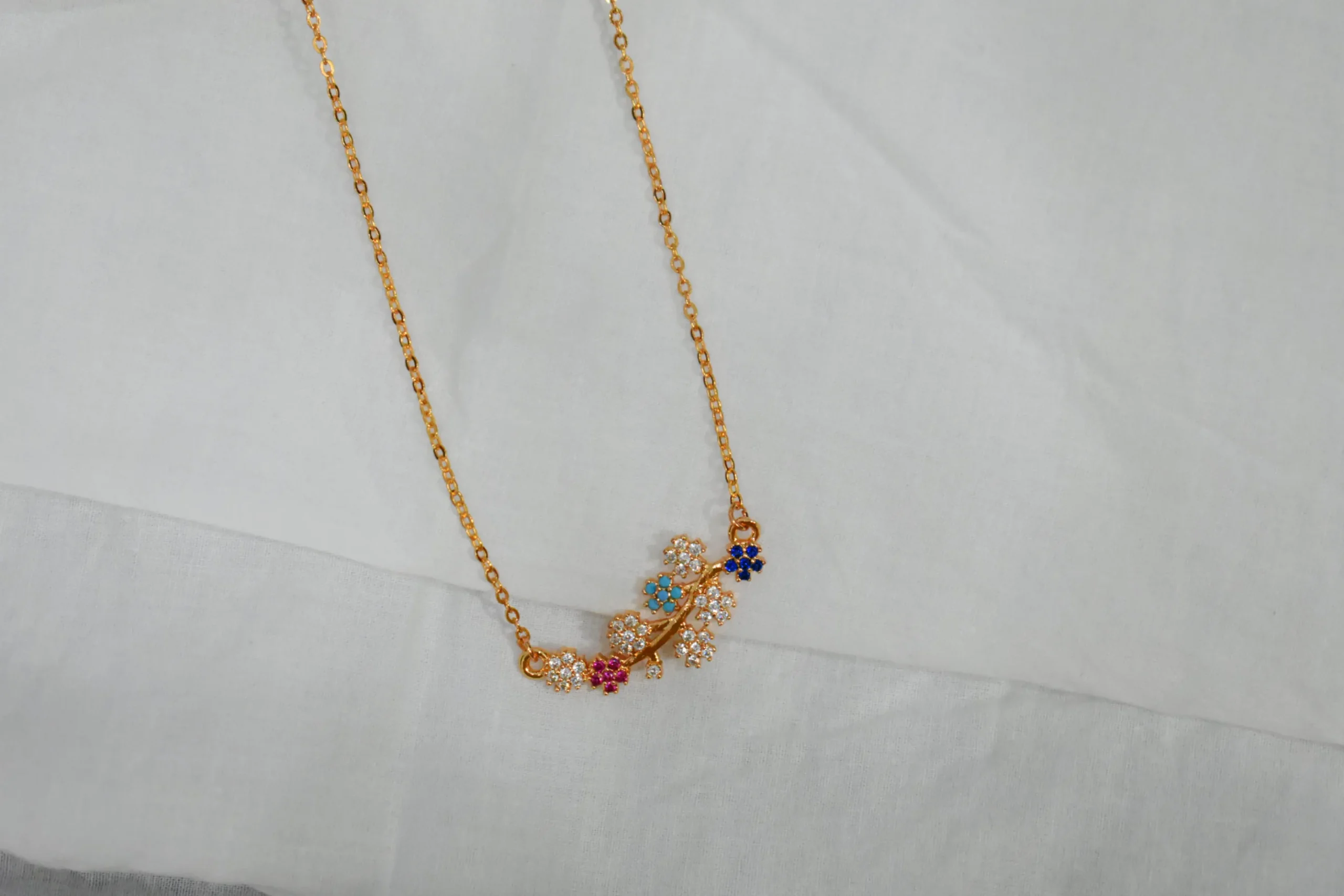 Gold Plated Floral Necklace with Multi-Color Zircon Stones – Elegant Jewelry for Girls/Women