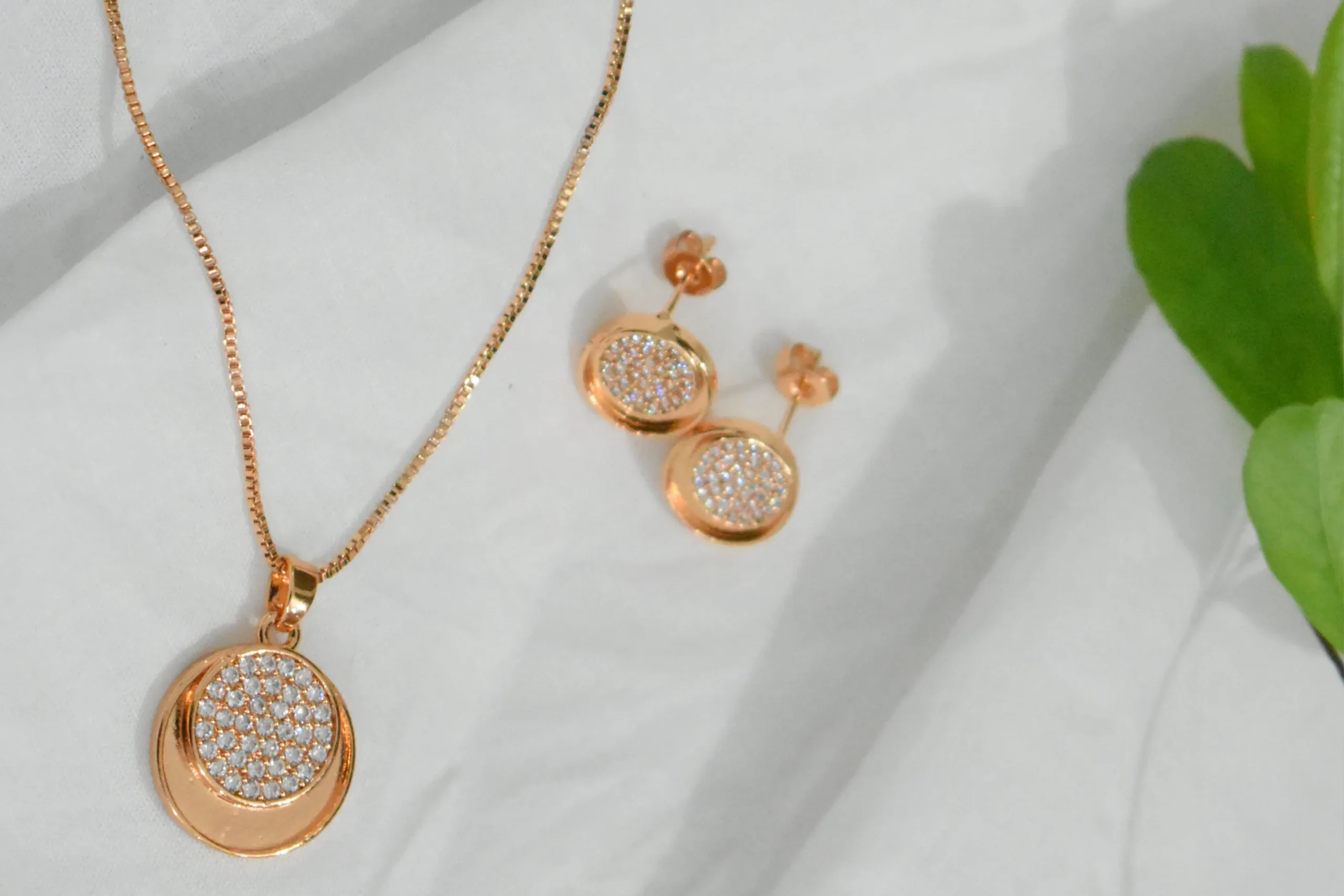 Half Moon Gold Plated Necklace with Zircon Stones – Elegant Jewelry for Girls/Women