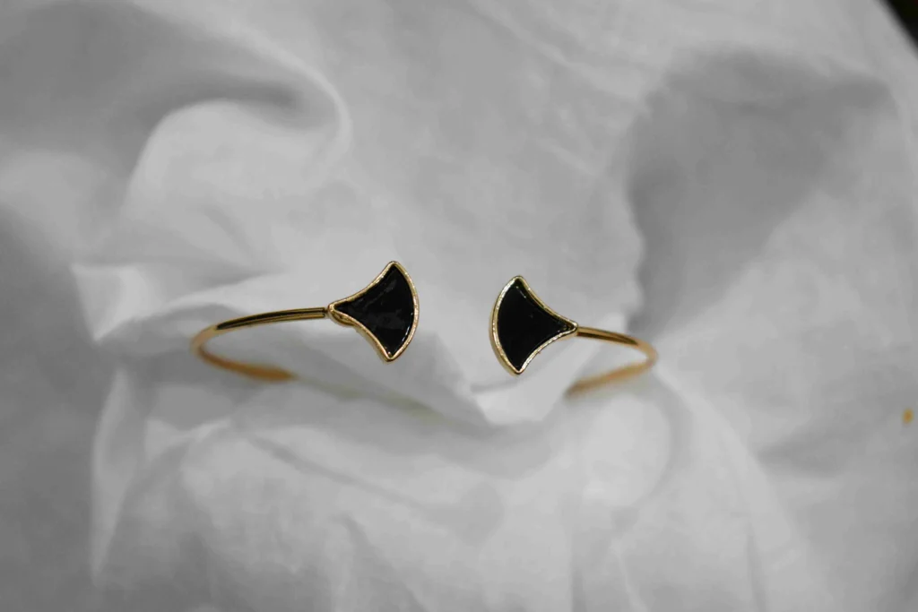 Add to Cart Elegant Gold Open Bangle with Black Enamel Accents ₨ 380 Original price was: ₨ 380.₨ 300Current price is: ₨ 300.